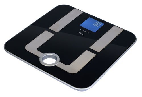 The MPR 180 body fat scale features a modern tempered glass and stainless steel construction with built in touch keys. The reverse backlit LCD displays not only body weight, but also body fat, bone mass, muscle, and body water. The additional data is calculated using BIA technology. A convenient carry handle allows you to easily carry the scale with you or store it on a wall hanger. Special Note on BIA: Bioimpedance Analysis (BIA) uses a low, safe electrical current. Those with pacemakers or other electrical implants should not use this scale as the BIA feature could possibly cause them to malfunction. Displays detailed body composition. Weighs up to 396lbs in increments of 0.2lb. Brilliant Reverse Back lit LCD. Stores height and age data for up to 8 different users (used for BIA feature). Attractive Black Glass Platform with Stainless Steel BIA contacts. Ready to weigh. No tap required to zero. Just step right on!. Capacity: 396lb / 180kg / 28st:5lb. Readability: 0.2lb / 0.1kg / 0.2lb. Repeatability: ±2d. Linearity: ±0.3% of actual reading +1d. Weighing Units: pound, kilogram, stone: Pound. Platform Dimensions: 12.6" x 12.6". Scale Dimensions: 12.6" x 12.6" x 0.9". Power: 4 x AAA Batteries (included).